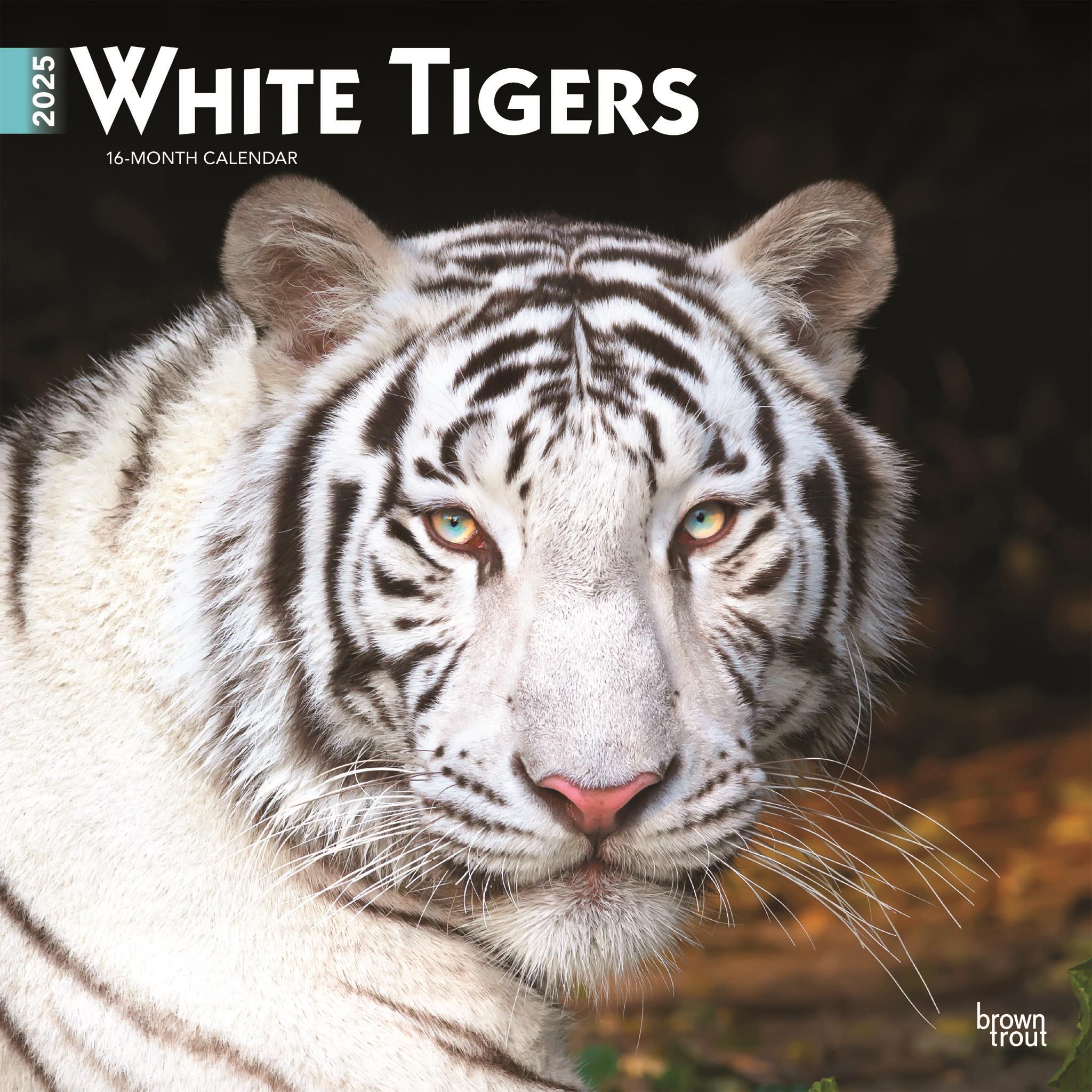 White Tigers 2025 12 X 24 Inch Monthly Square Wall Calendar